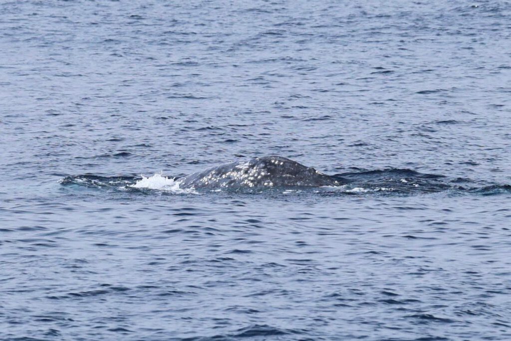 Our Sunday morning whale watch started with an immediate southbound gray whale! Within 15 minutes of leaving the jetties we located this barnacle covered buddy and observed a few breath cycles before heading out to deeper water.