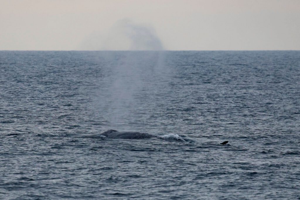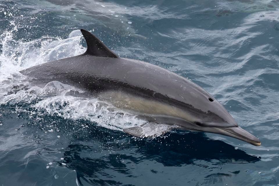 TWO FIN TUESDAY! We had an awesome afternoon trip with sightings of two Fin whales and 200 Long-beaked Common dolphins! We cruised out to the west and in about 300-ft of water we spotted a massive columnar spout in front of the boat! We were stoked to see the second largest whale in the world! It was circling the area, first sighted going north, then east and then back south! We got some amazing looks and realized there were two fin whales in the area! One was smaller than the other and wondered if was an older calf with mom? The smaller one came up twice as many times as the older one and seemed to be more curious with the boat! On two occasions it popped up close to the boat! We also noticed it had cookie cutter shark bites on its side! We never saw them side-by-side but one of our last looks they synchronized their breaths! They both surfaced at the same time exhibiting their spouts! We waved goodbye to them and ventured south and spotted a huge pod of ~200 Long-beaked Common dolphins that suddenly began stampeding to the NW. When we finally caught up with them they raced over to bow-ride and surf in our wake! They took us north back to the Fin whale zone so we got to hang out with them for a few more cycles. Interestingly, once one of the whales surfaced in front of the traveling pod, they changed course and made a 90degree turn to the west! Seemed like they didn’t want to entertain any Fin whales today!