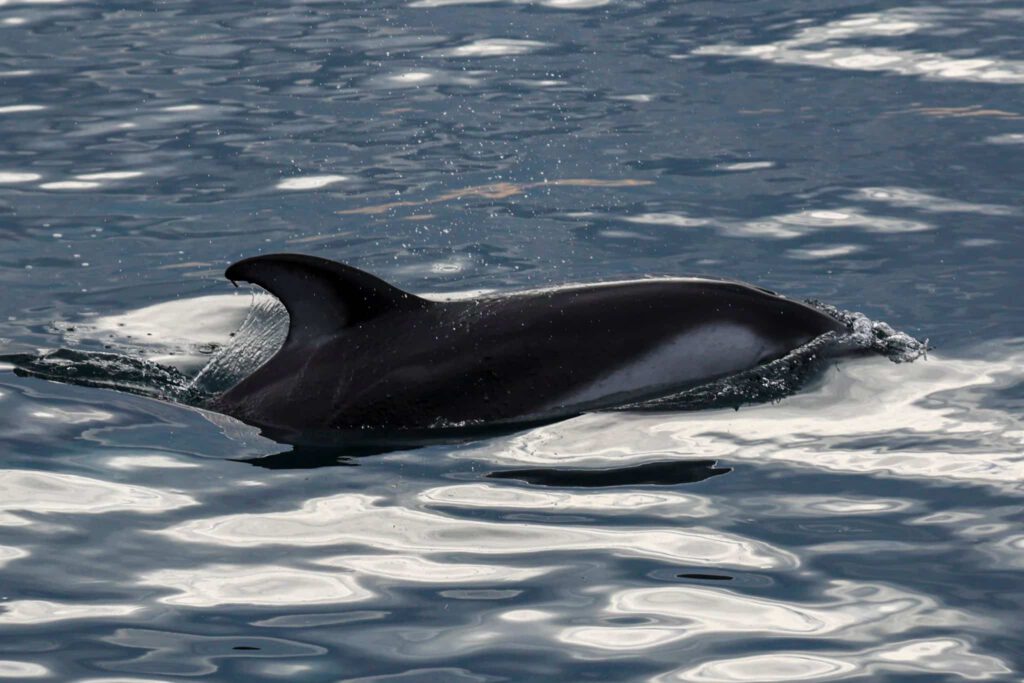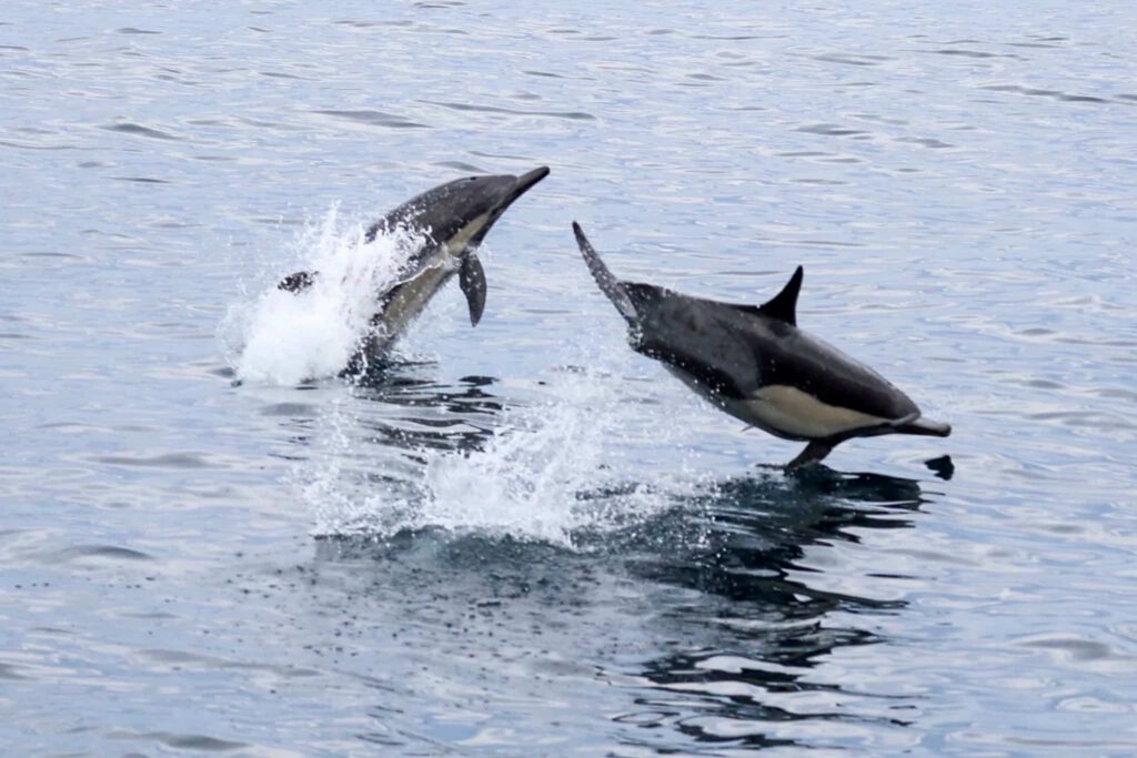 We cruised out on the smooth seas and hooked a hard right out of the gate! We sighted a small pod of ~15 Pacific white-sided dolphins! They were circling the area likely feeding! They formed some pretty cool echelon formations and made quick movements at the surface! They were pretty active and anytime we picked up the pace some would race toward our boat to bow-ride! We left them behind and began our journey out west and sighted more splashes in front of us! We encountered a huge spread-out group of ~400 Long-beaked Common dolphins! They were playful and loved to race up to us! Everyone cheered with excitement as they showed off their speed! We cruised out to the west and once we got to the drop-off we spotted a Fin whale! It was circling the area feeding down below in about ~800 feet of water! We got great looks as it came up for multiple breaths, and down for short dives! We noticed it had a bunch of cookie-cutter shark bite scars on the sides of its body!