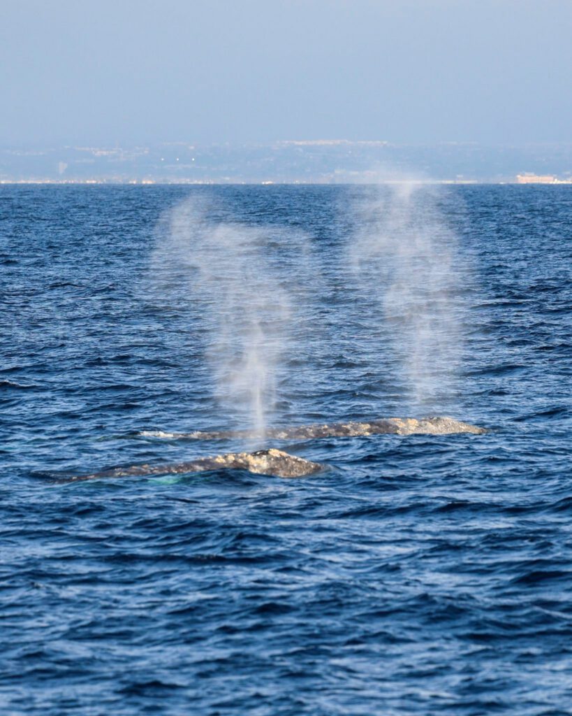 We had a beautiful day with Gray whales sighted all day! We sighted a single gray whale and a single bottlenose dolphin on the afternoon trip!