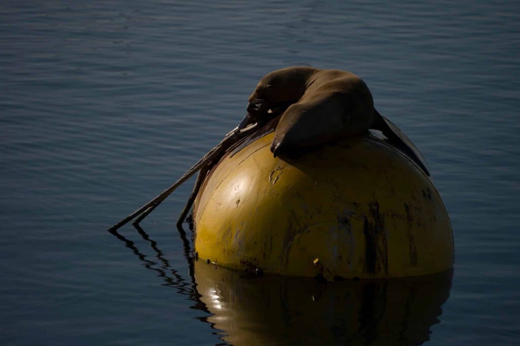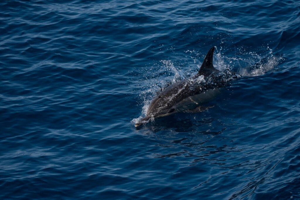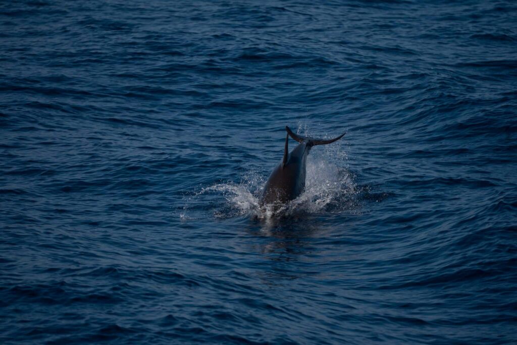 On our afternoon cruise, we left Mission bay and cruised down to the SW. We got to the drop-off and spotted a few splashes and even mini spouts as they surfaced! There were about 10 Offshore bottlenose dolphins! We noticed their dorsal fins slicing through the water. They were pretty mellow but still sighted them all around the boat. We followed the drop-off to the north and then hugged the coast back south. We took in the amazing sunset and spotted a single Inshore bottlenose dolphin in the channel!
