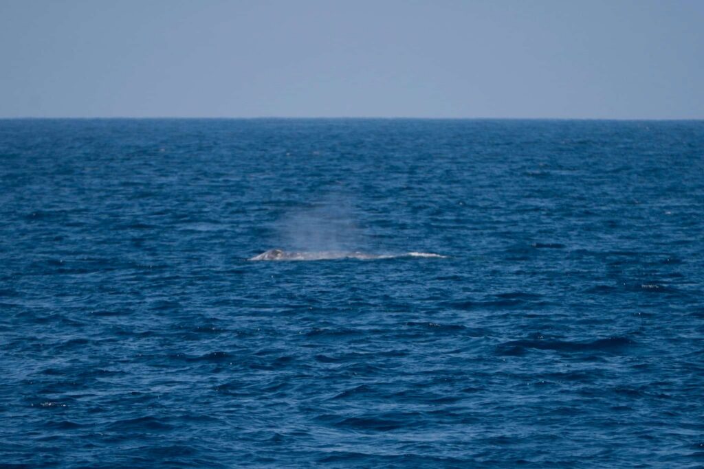 Our final whale of the day gave us a glorious last look. It was cruising southwest into the sun, its spout erupting in golden light as its dense, blubbery body jiggled over a rolling swell. A perfect farewell.