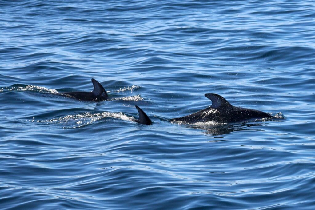 We’ve also been seeing a small pod of Pacific white‑sided dolphins that loves hanging out a few miles off the coast between Windansea and Mission Beach. Today they were EXTRA rambunctious — leaping, flipping, and twirling around each other just below the surface.