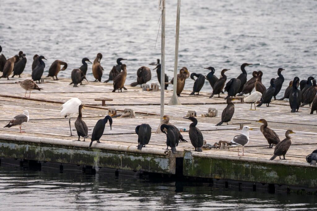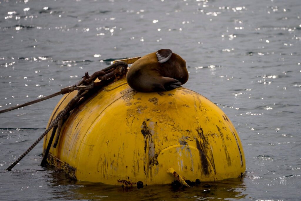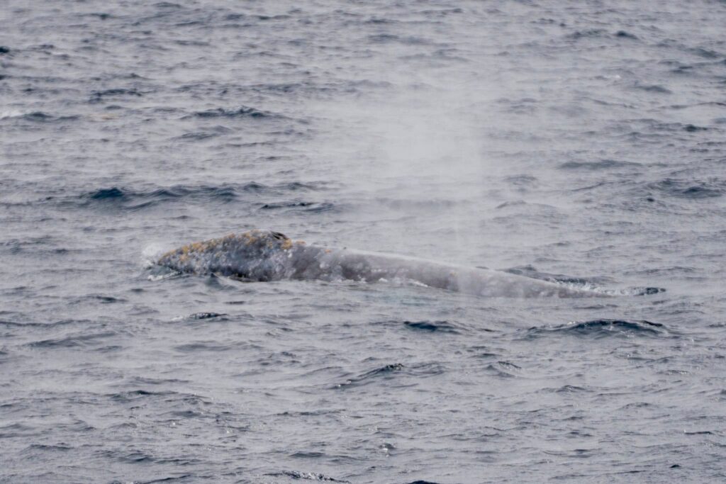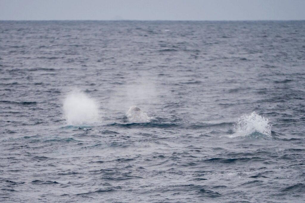 We headed straight out and located at least five Gray whales! Without a bird’s‑eye view — or a drone — it’s hard to say exactly how many, but we believe there were even more. These whales were blasting south, holding steady in about 240 ft of water with 8‑minute dive times. We saw flukes on every dive!