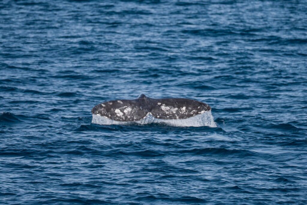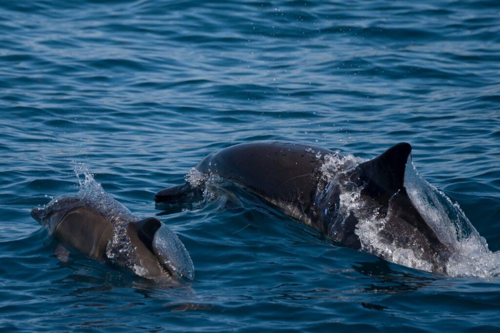 We also got incredible looks at a fun pod of common dolphins. There were some tiny, squishy babies all hanging out together and playing. When dolphins are really new, they’re still figuring out the exact placement of their blowholes, so they can be clumsy, jumpy swimmers — absolutely heart‑melting to watch.