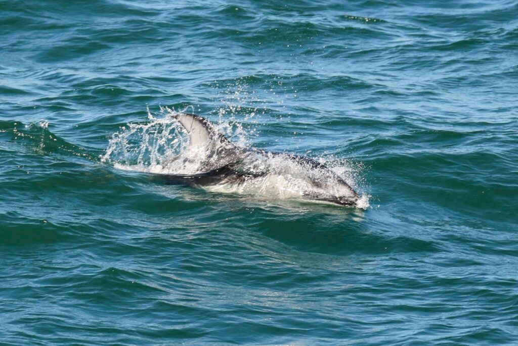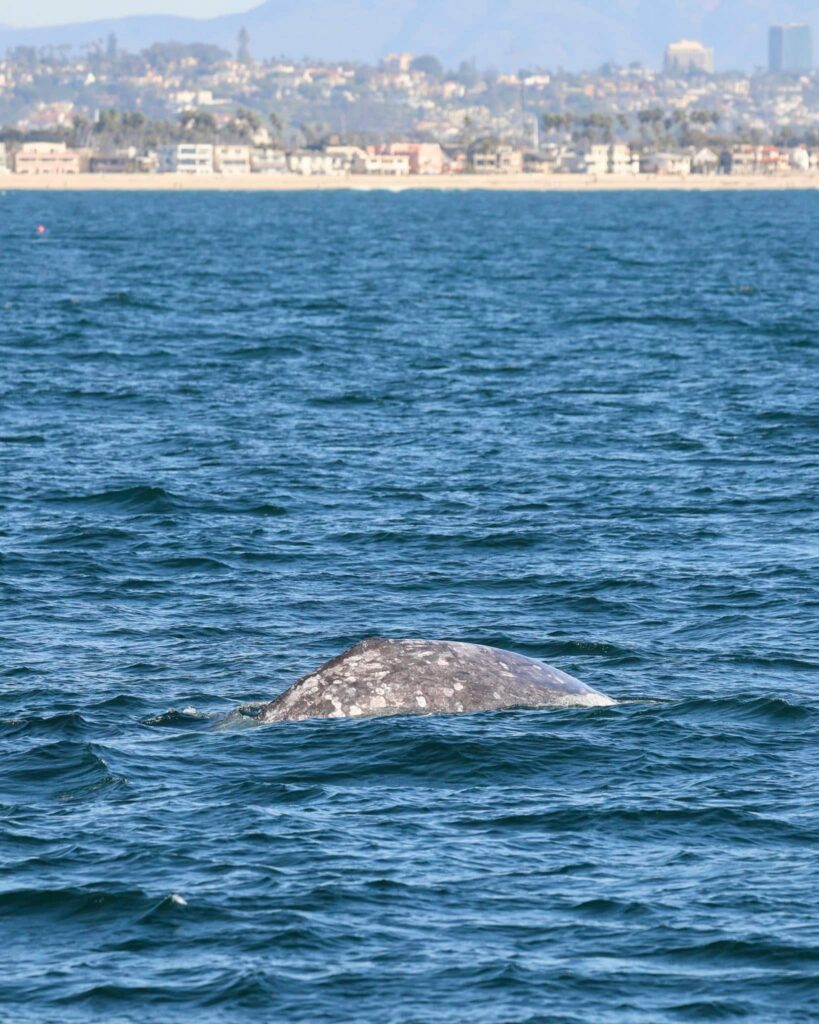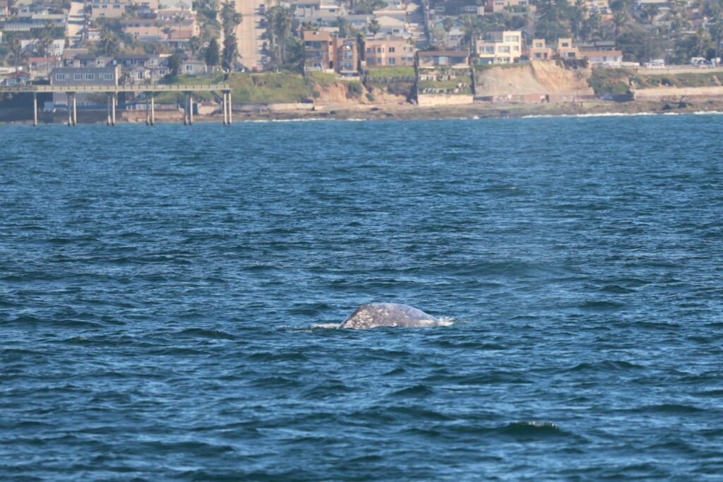 We were smooth sailing out on the Privateer today! We set out of the Mission bay jetties and spotted a small handful of Pacific white-sided dolphins! They raced around, likely chasing bait! We noticed a handful of gulls diving and watching them in hopes of also getting some prey! We ventured out to the west and once we got to the drop-off we hooked out to the SW toward the 9-mile bank. Then we turned in toward the coast line and took the spectacular views of south San Diego and Mexico! We hugged the coast back up toward Mission bay! We got super lucky as we got a call from our friends letting us know about a southbound Gray whale! We watched it surface for 3-4 breaths with 6-min dives. We had great looks as it surfaced for strong arching dives with Ocean Beach in the background! We wished it well as it continued down toward the lagoons!