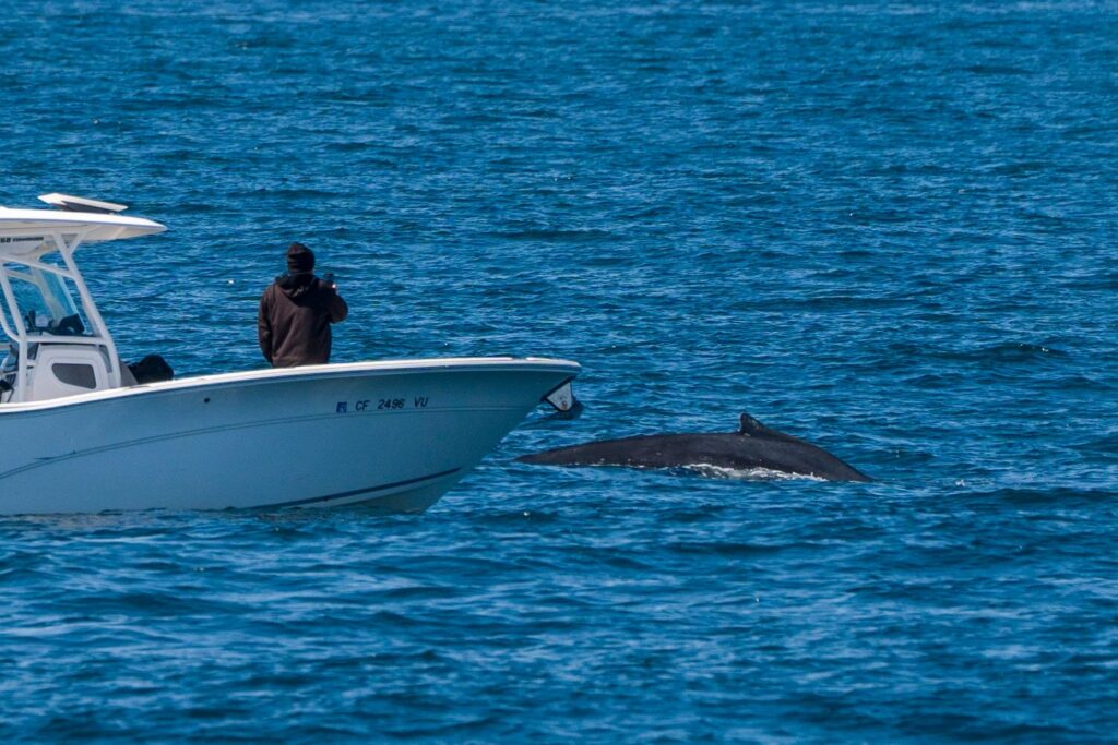 On our way back to shore, we also got a few great looks at a humpback whale that was very interested in the small boats around us—sneaking up right behind them like an ocean prankster!