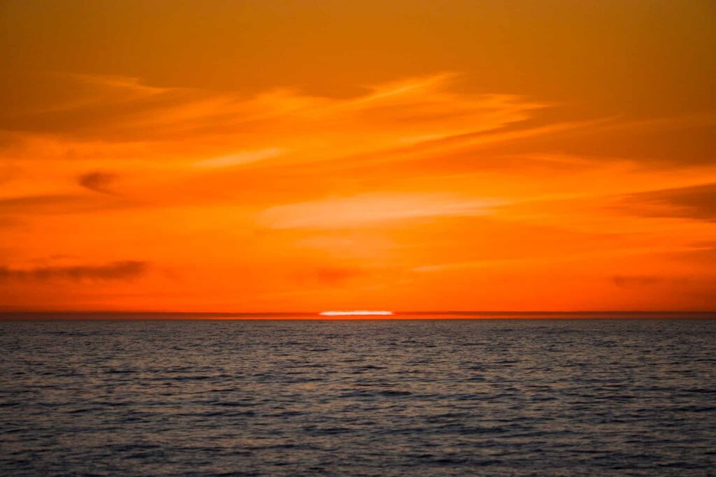 As the sun sank into the horizon, we were starting to get a little nervous that we might not find whales… but Capt. Brian spotted a spout at the last minute and decided to go for it! What followed was an AMAZING fin whale interaction.