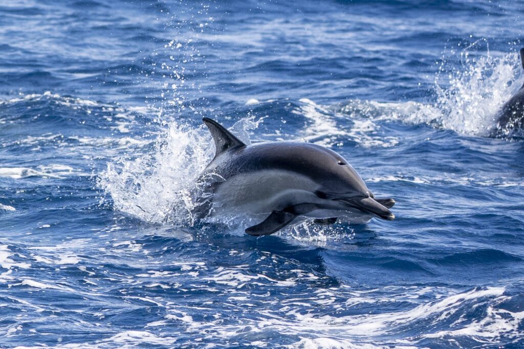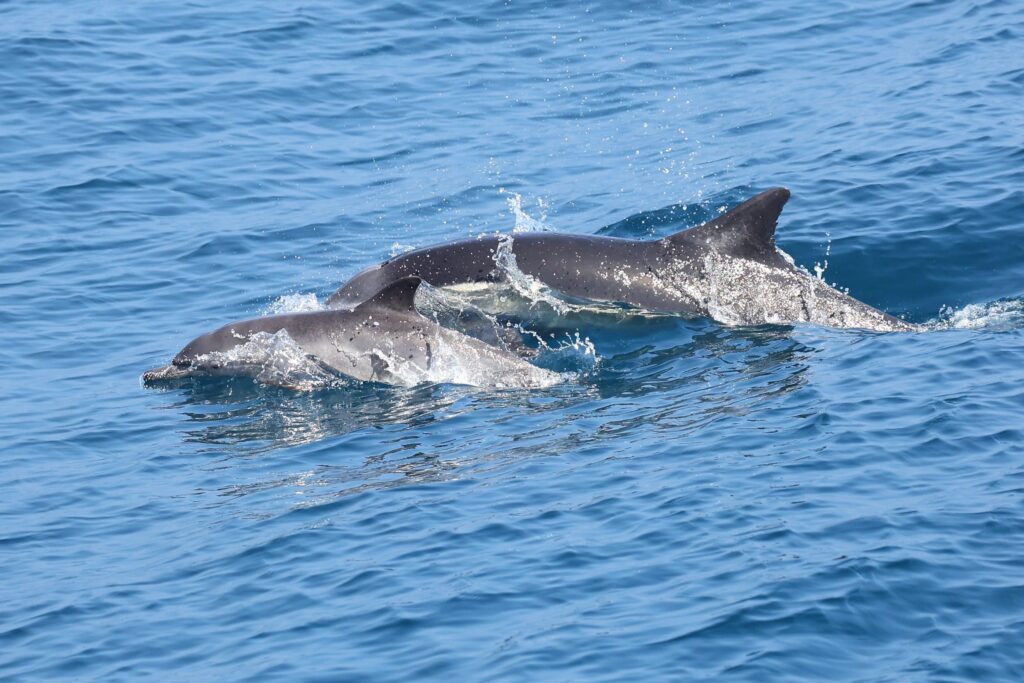 We witnessed a stampede—when an entire pod of dolphins decides to take off together! There’s less resistance moving through air than through water, so when they pick up speed, they leap fully out of the water. This incredible behavior is called porpoising.