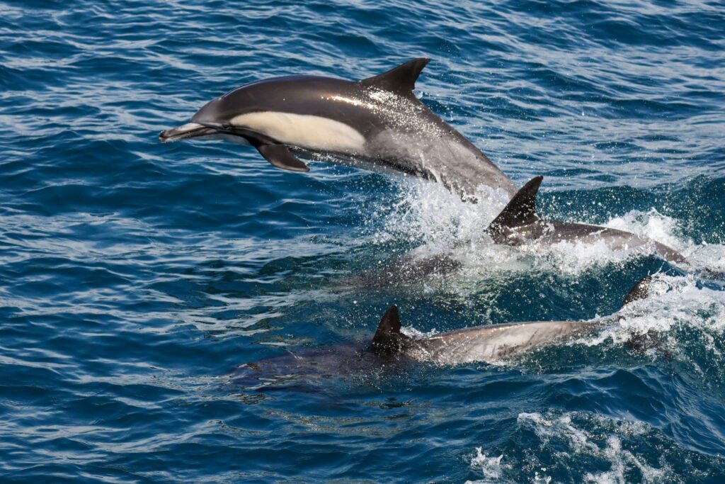 We started out early in the trip finding a small pod of ~10 long beaked common dolphins surfing our wake.