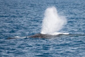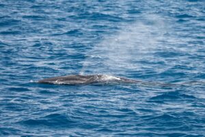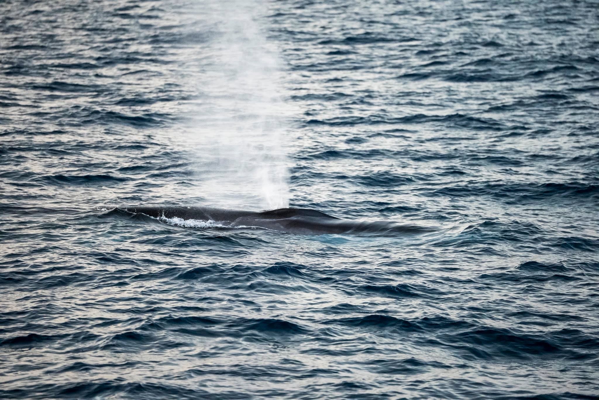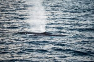 At one point, we shut the boat off as a huge fin whale passed by us, miles offshore. Everything went quiet—just the gentle lapping of water on the hull and whispers of wind. These whales have enormous lung capacity, and when they surface, that thunderous exhale rattles your whole body. We felt the atmosphere quake as this whale rose from the depths.