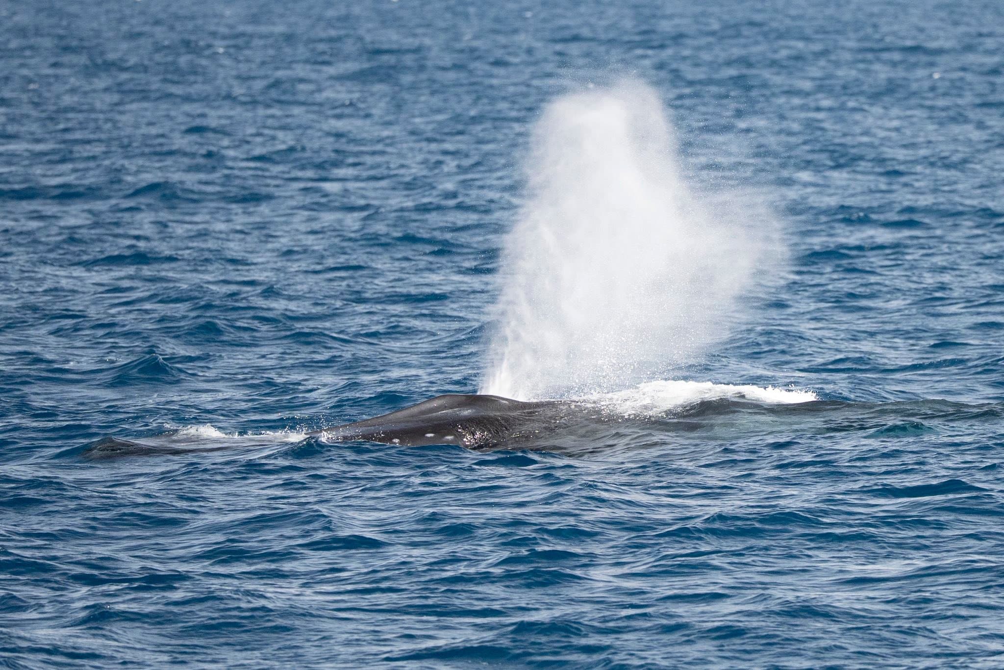 The day started off great, with a slow roll that built into an ABSOLUTELY EPIC ending. We had pairs of fin whales on both morning trips, with incredible looks at these massive animals.
