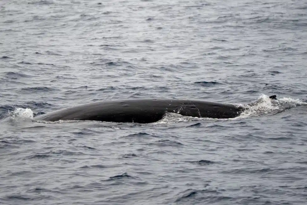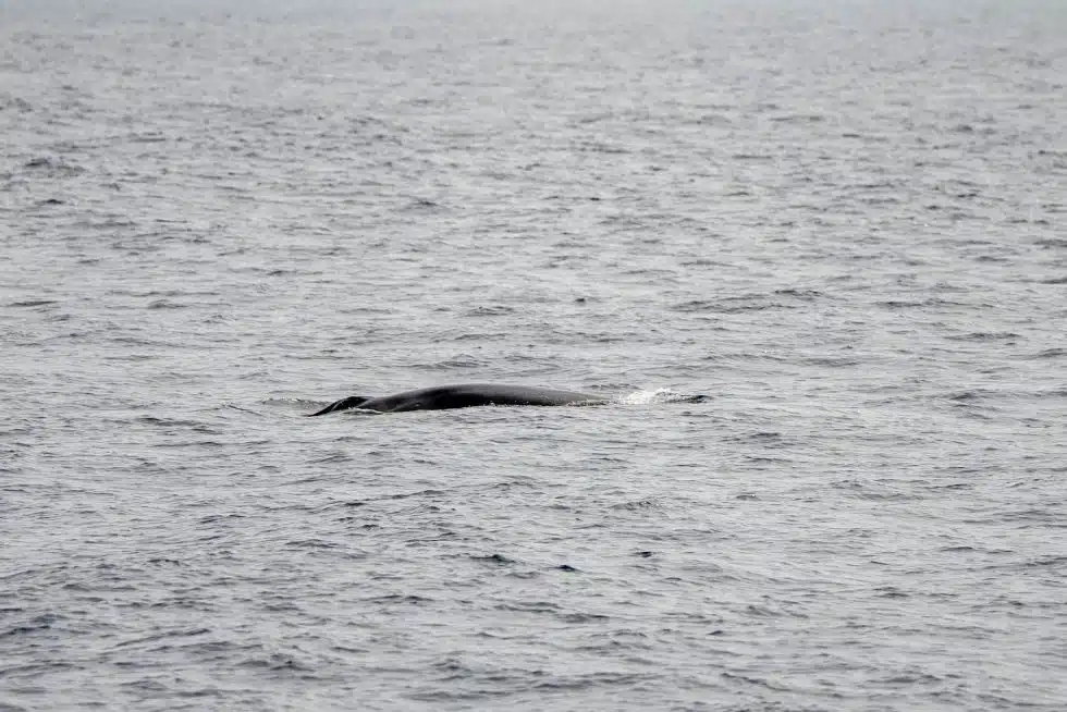 We started with two fin whales, one of which kept us guessing as it carved tight circles at the surface, changing direction and popping up in unexpected places. While we were tracking its path, we spotted massive splashes on the horizon… and that’s when the real show began.