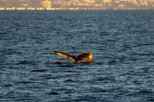 Then we caught up with a HUGE humpback whale! Its spout was so massive we initially thought it was a fin whale. This beauty was doing 8‑minute dives with 3‑minute surface intervals, and lucky for us… it was a fluker! Nothing gets the boat cheering like a big, beautiful tail throw. We’ve been missing these whales this spring — so good to sea them back in the mix.