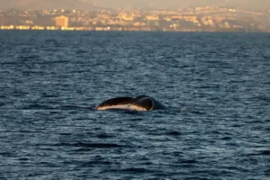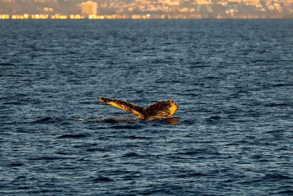 Our afternoon kicked off with a fin whale racing down toward Mexico! This whale had places to be — it practically escorted us all the way to the border. Since we can’t follow into Mexico, our evening trip took us back north… and that’s where the magic continued.