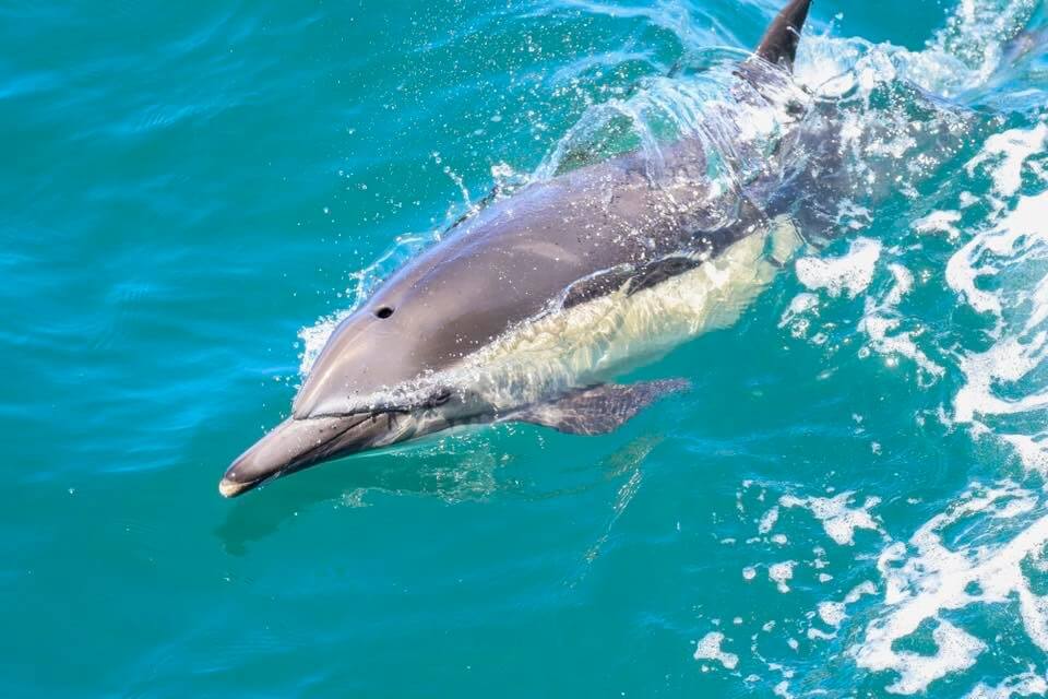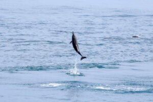 The morning whale watch left us mesmerized by dolphins a plenty! Both long and short beaked common dolphins danced in the morning light! Lots of babies as the spring time trend of seeing calves continues! We even got great looks at the largest bony fish on our planet, the ocean sunfish! After hanging with this large fish, we headed out for more common dolphins before heading home. On our way back to Mission Bay: there she blew! We had a tough time tracking with a mystery baleen whale that we believe was a juvenile fin or potentially a Bryde’s whale! It was doing a lot of shallow surfacing and long times under water so the mystery may never be solved but we were happy to see a baleen whale anyway!